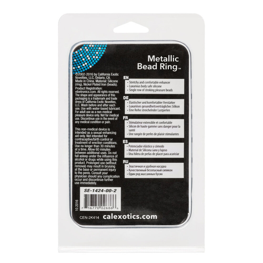 Stretchy enhancement ring with metal beads for stimulating tactile sensations. Realistic dildo not included